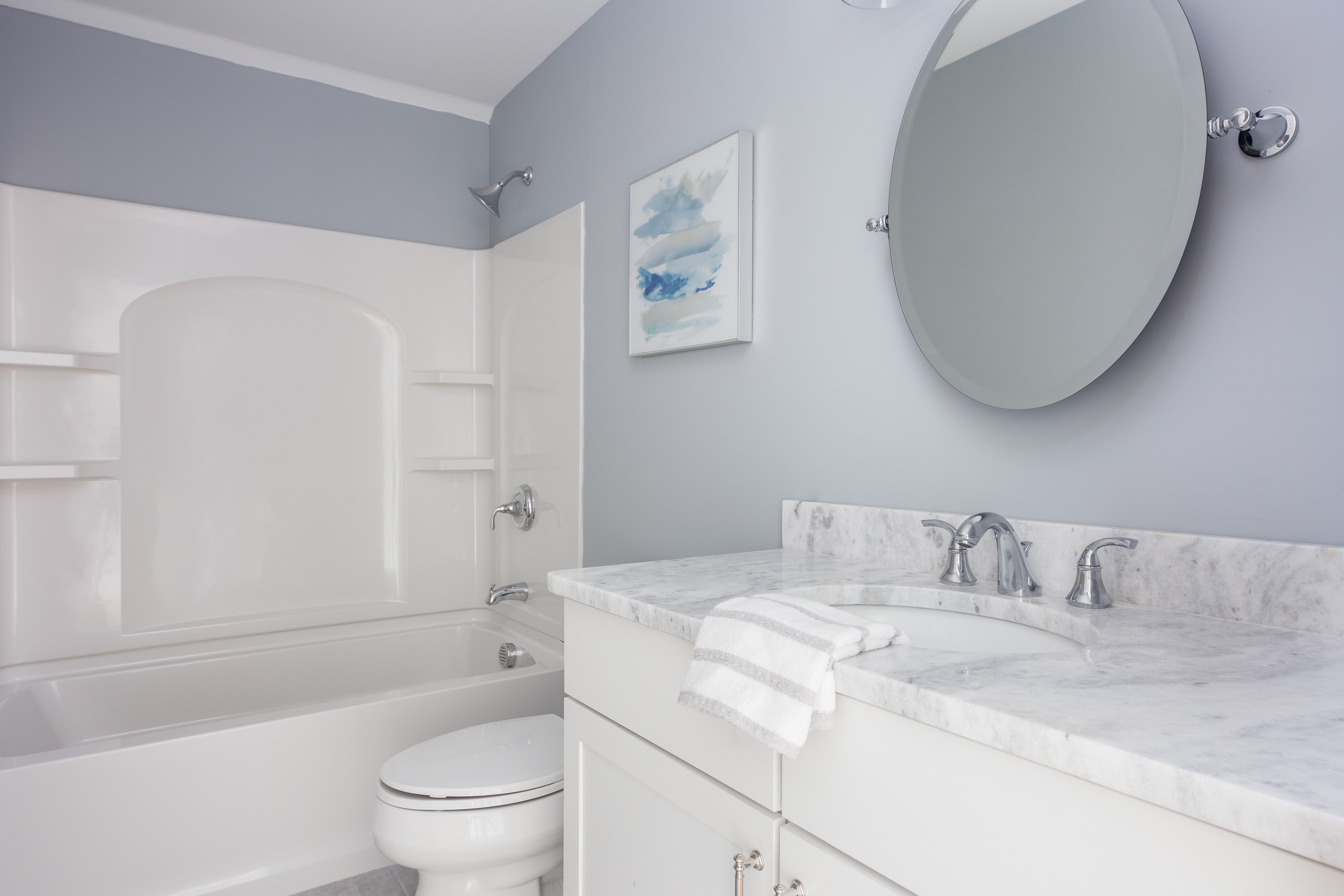 Ceramic tile floors and showers made for comfort as well as stain resistant rugs in bedrooms.