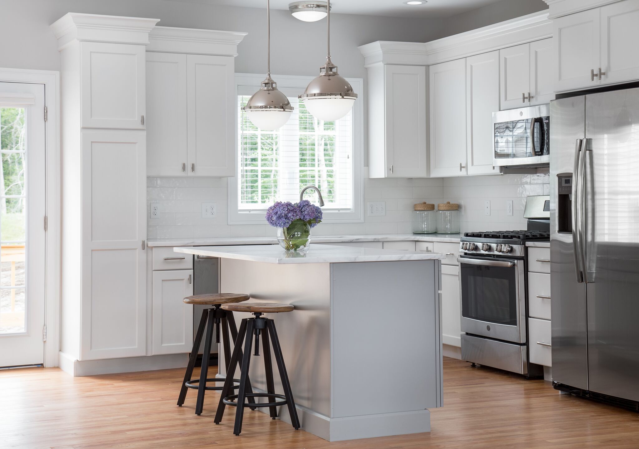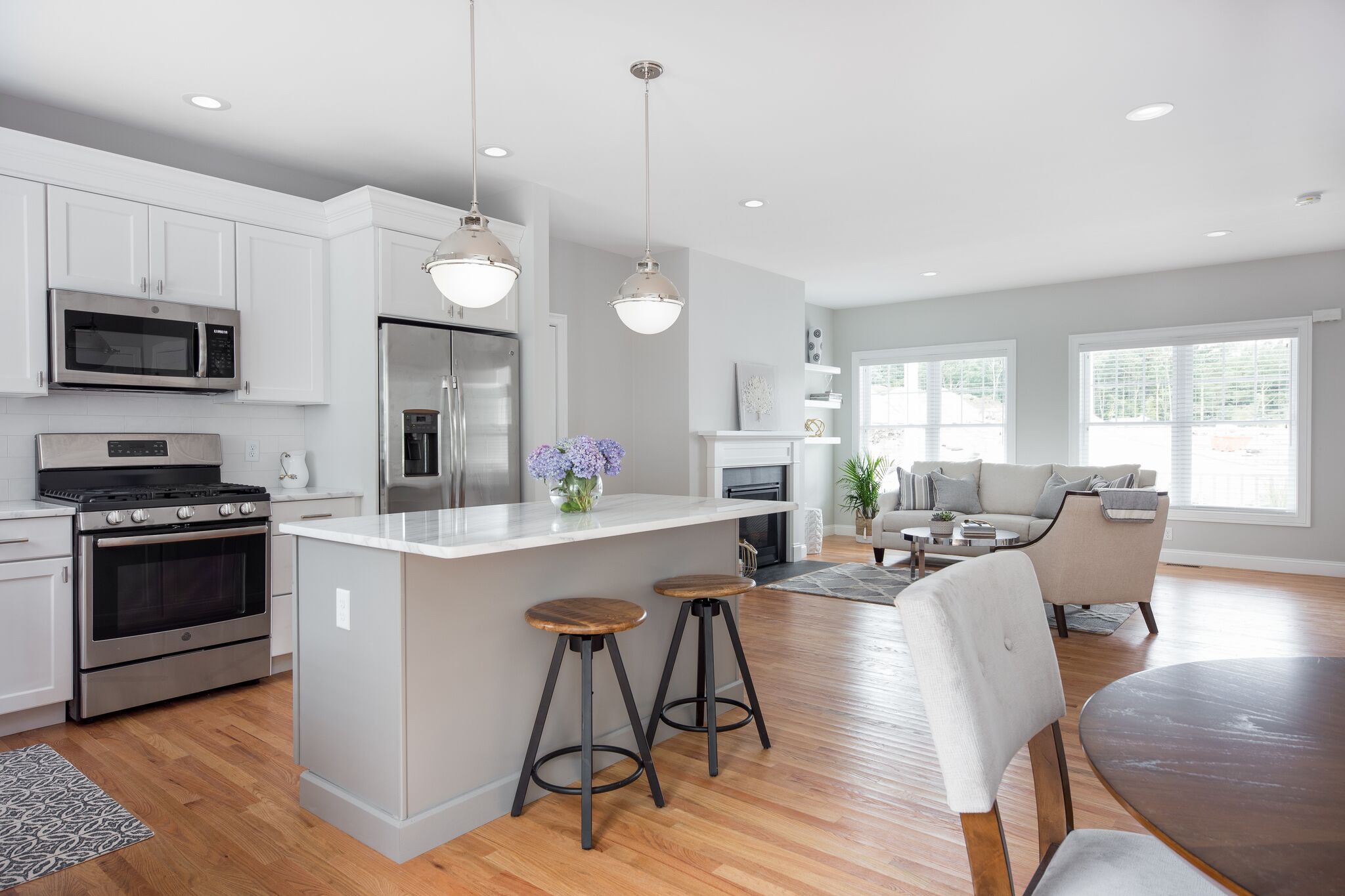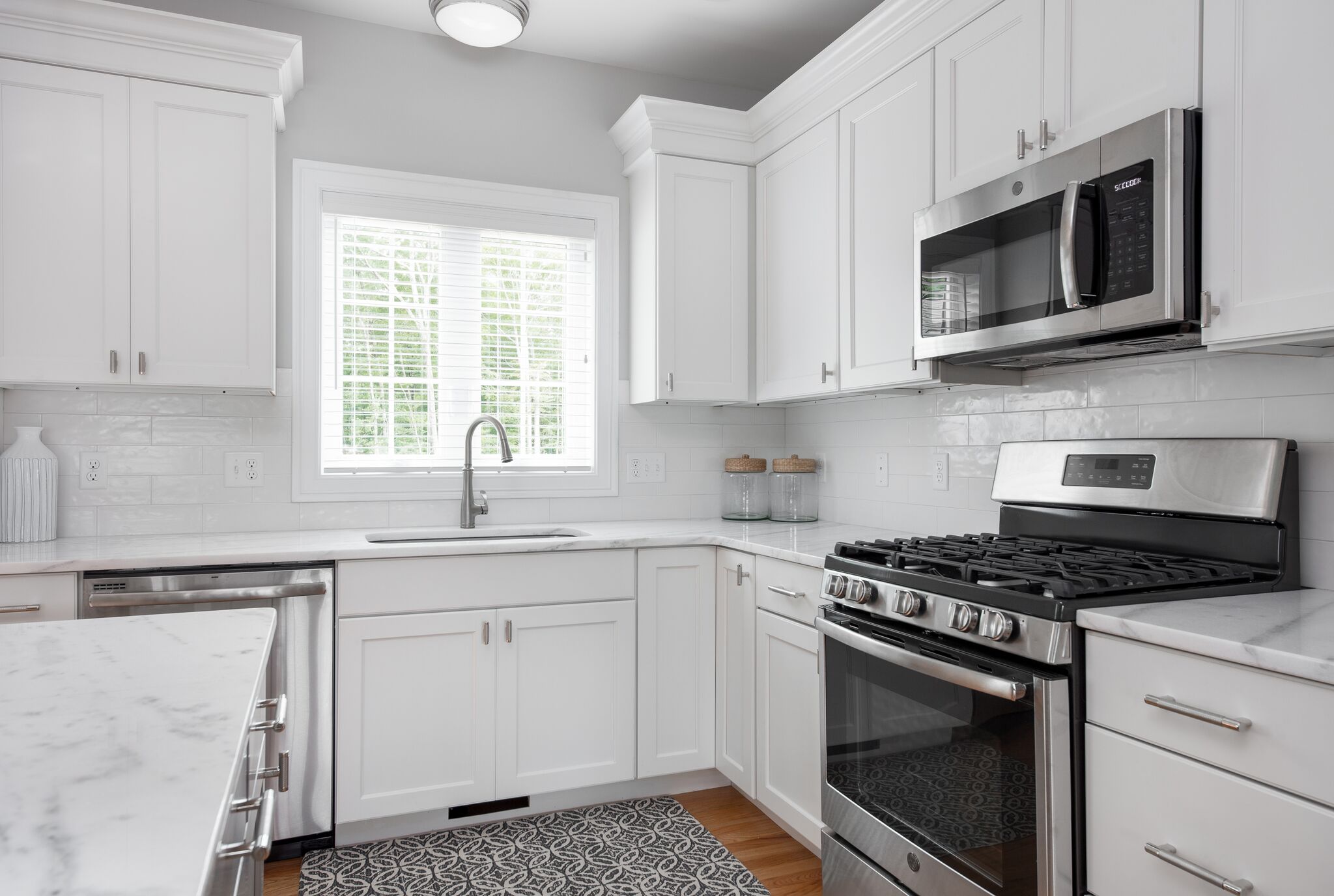 Custom cabinetry, granite countertops, and stainless steel applicanes come standard with kitchen and bathrooms.